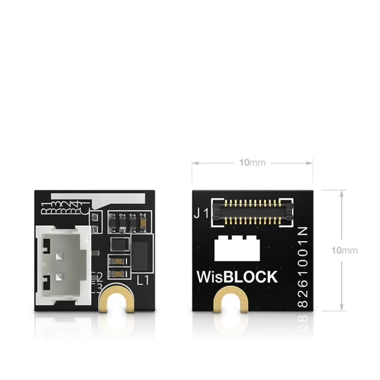 Mit seiner kompakten Größe von 10 × 10 mm lässt es sich problemlos in WisBlock Sensor-Slots (z. B. RAK19007) integrieren und bietet eine zuverlässige Energieversorgung auch in platzbeschränkten Anwendungen.
