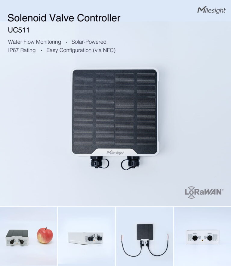 Die Milesight UC511-DI-868M Magnetventilsteuerung ermöglicht die drahtlose Steuerung von 12V DC-Latching-Magnetventilen über LoRaWAN® mit integrierter Impulszählung für Wasserzähler. Dank Solarpanel, Batterieversorgung und IP68-Schutz ist sie optimal für den Außeneinsatz in der Landwirtschaft, Gartenbewässerung oder Smart City Anwendungen geeignet.