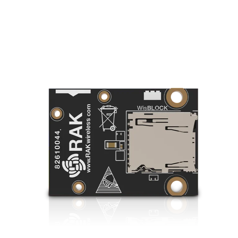 Das RAK15002 ist ein WisBlock SD-Kartenmodul, das die Nutzung von Micro-SD-Karten als Speichermedium ermöglicht. Es erlaubt die Speicherung großer Datenmengen, die dank des herausnehmbaren Kartenformats leicht an einem anderen Ort analysiert werden können.