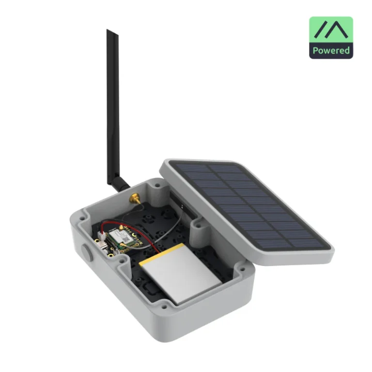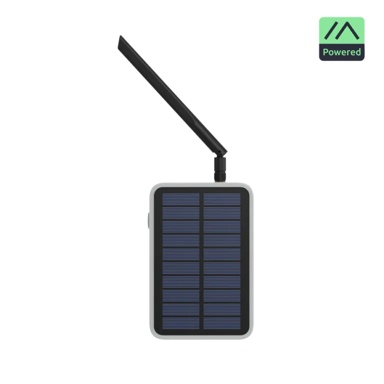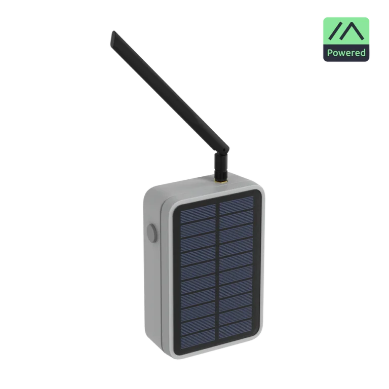 Das robuste IP67-Gehäuse mit integriertem Solarpanel und 3200 mAh Li-Ionen-Akku ermöglicht einen dauerhaften Betrieb auch ohne externe Stromversorgung.