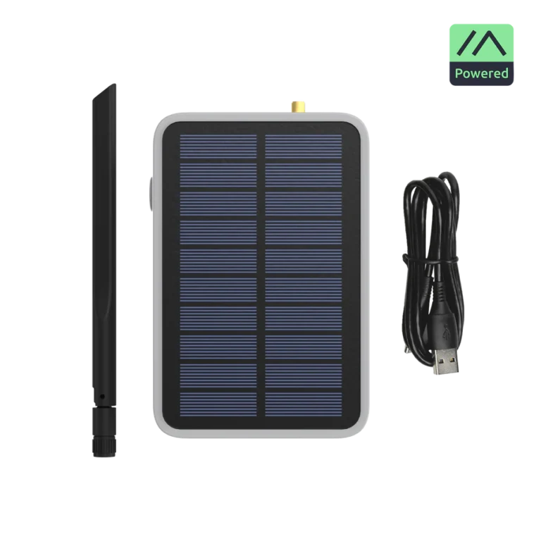 Off-Grid-tauglich: Akku und Solarpanel ermöglichen zuverlässigen Betrieb ohne externe Stromquelle.